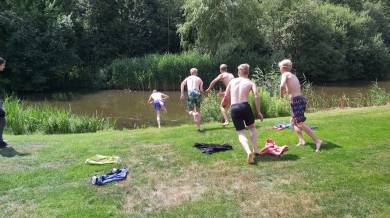 Als echte kampioenen zijn "de mannen" na afloop in de vijver gesprongen om de overwinning te vieren!